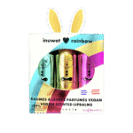 Inuwet Tavşan Kutulu Set -Elma, Marshmallow ve Pamuk Şekeri Aromalı 3 Adet Dudak Nemlendiricisi ve 2 Adet Gökkuşağı şeklinde Klips Toka