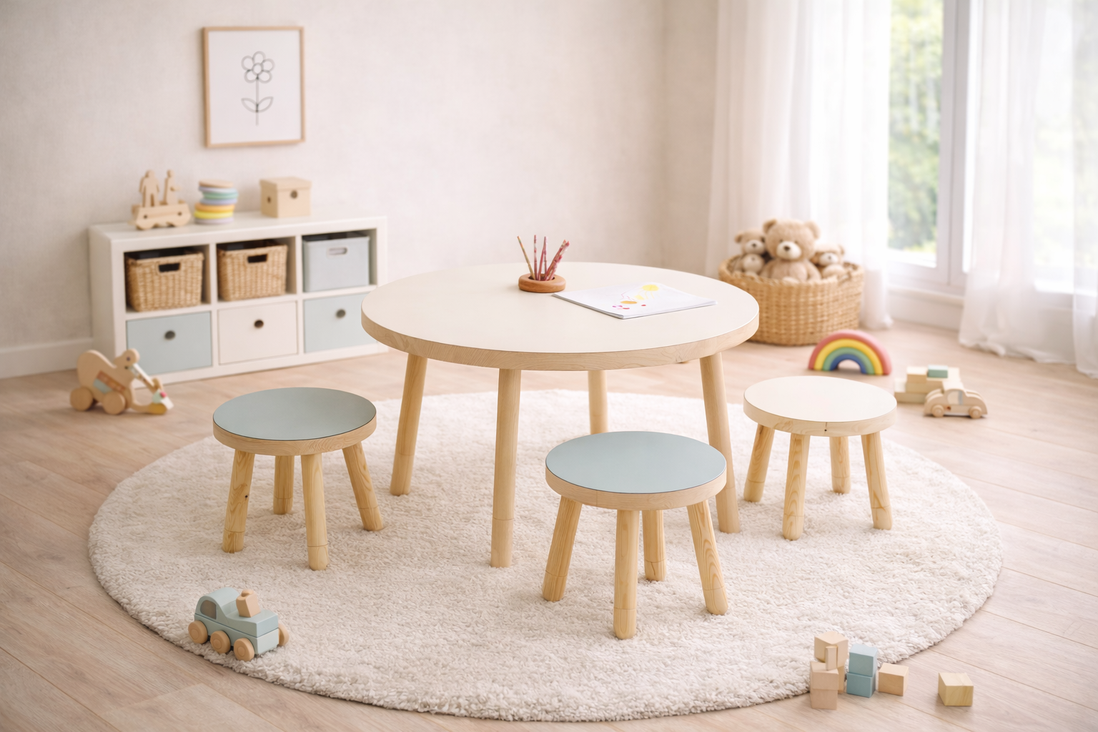 Doğal dokusu ve yumuşak hatlarıyla Luna Tabure, miniğinizin odasına sıcak ve zamansız bir dokunuş katmak için tasarlandı.