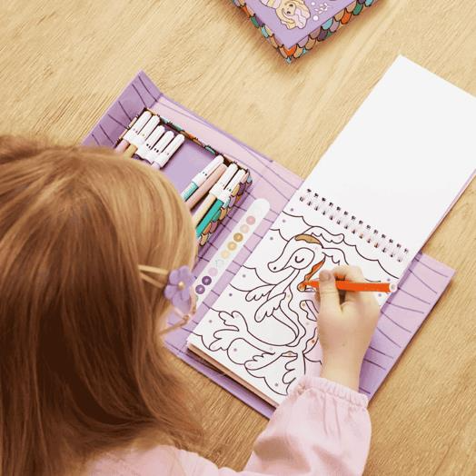 Bu set, sanatsal keşiflerinde yönlendirmeye ihtiyaç duyan çocuklar için ideal; çünkü yerleşik renk anahtarı, renk yerleştirme konusunda özgüven sağlıyor